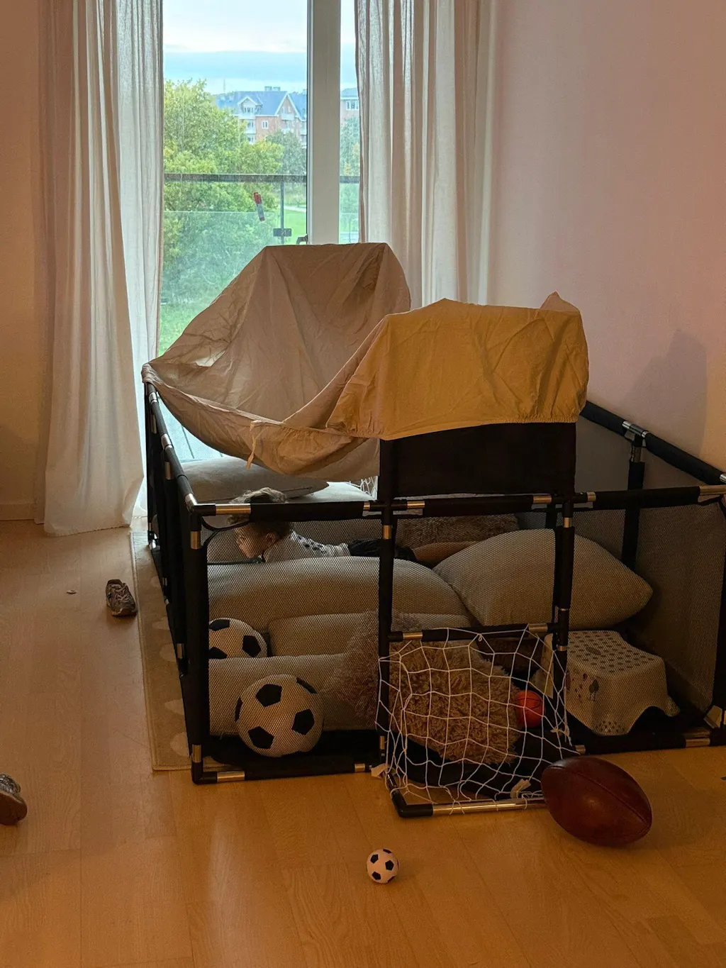 Onze kinderbox is ontworpen voor kinderen van 3 tot 48 maanden. Zelfs op jonge leeftijd kunnen baby's veilig op verkenning gaan door zichzelf op te trekken met behulp van de ingebouwde op trek ringen, waardoor ze kracht en evenwicht ontwikkelen. Naarmate ze groter worden, moedigen de voetbaldoelen en basketbal ringen actief spel aan, waardoor hun coördinatie en motorische vaardigheden op een leuke en boeiende manier worden verbeterd.